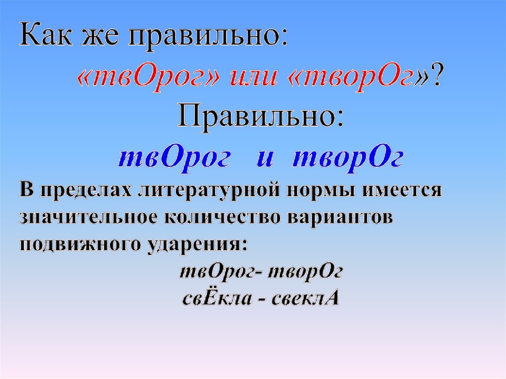 Мой дядя выяснял лет сорок,И все же выяснить не могКак говорить вернее: твОрог?!