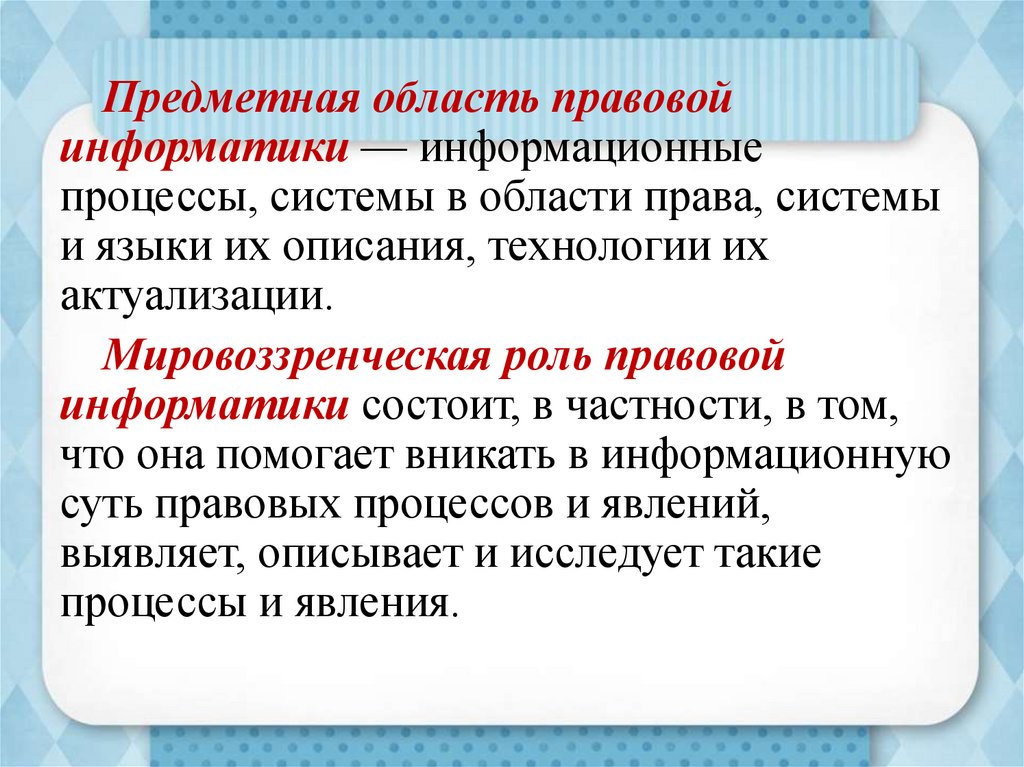 Предметная область правовойинформатики — информационные