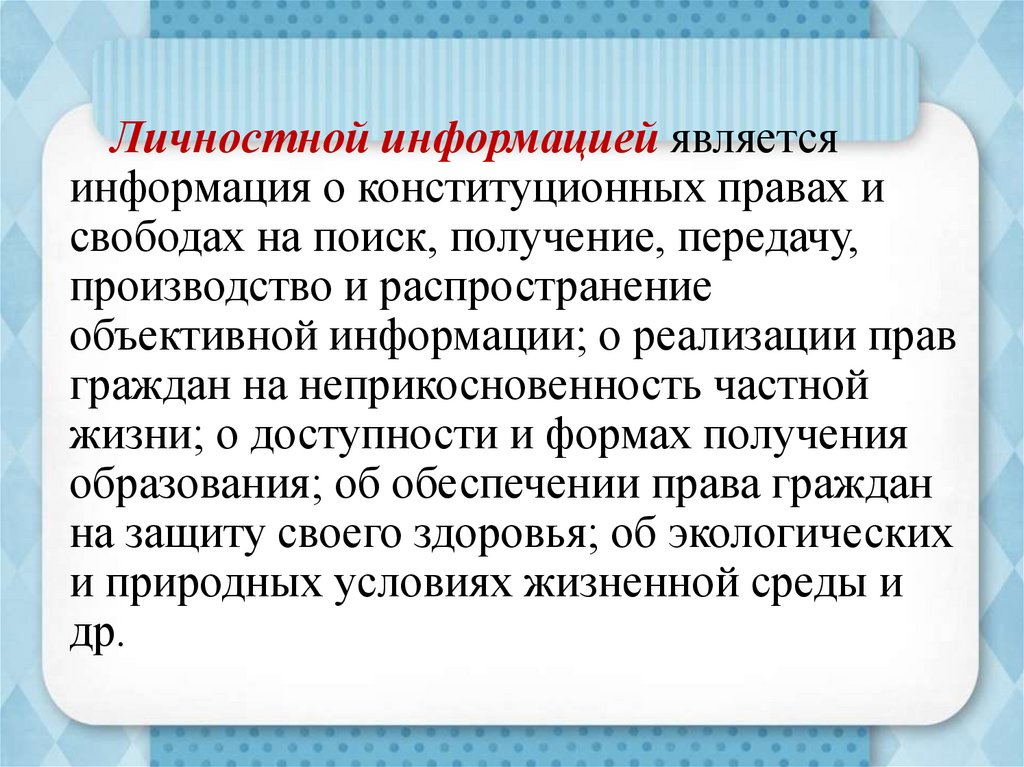 Личностной информацией являетсяинформация о конституционных правах и