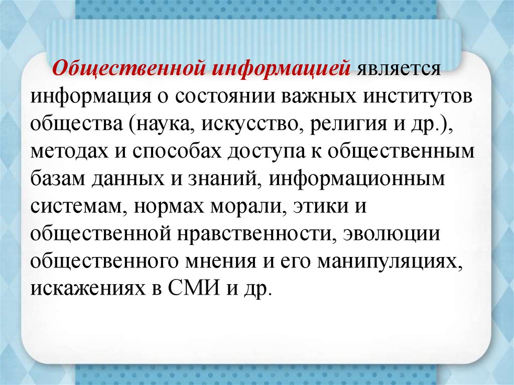 Общественной информацией являетсяинформация о состоянии важных институтов