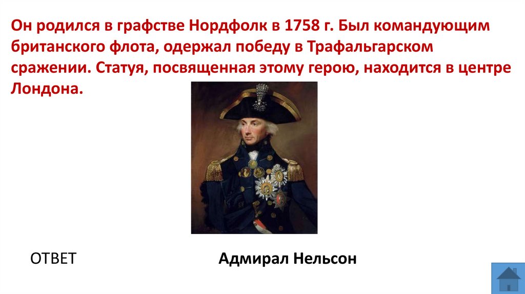 Он родился в графстве Нордфолк в 1758 г. Был командующимбританского флота, одержал победу в Трафальгарском
