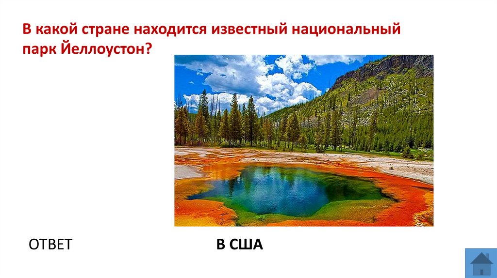 В какой стране находится известный национальныйпарк Йеллоустон?