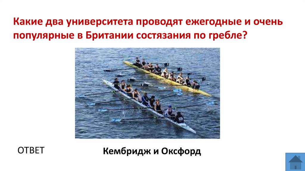 Какие два университета проводят ежегодные и оченьпопулярные в Британии состязания по гребле?