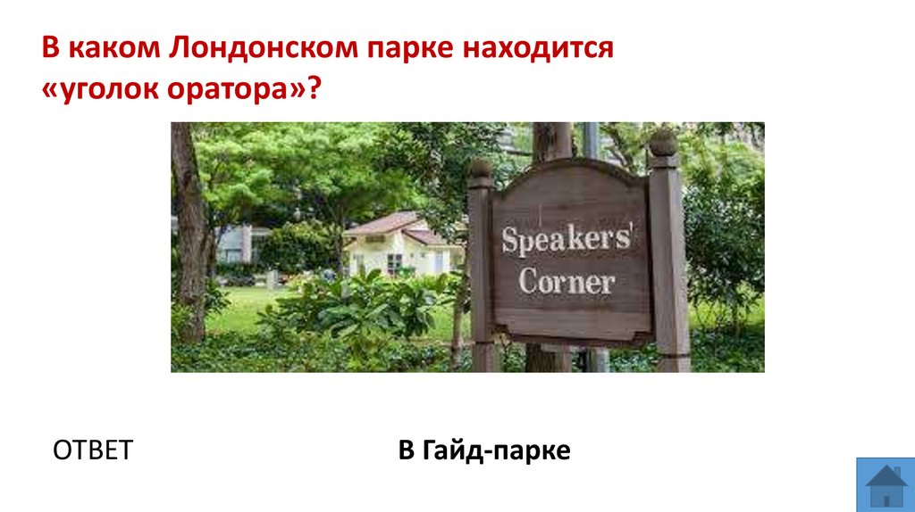 В каком Лондонском парке находится«уголок оратора»?