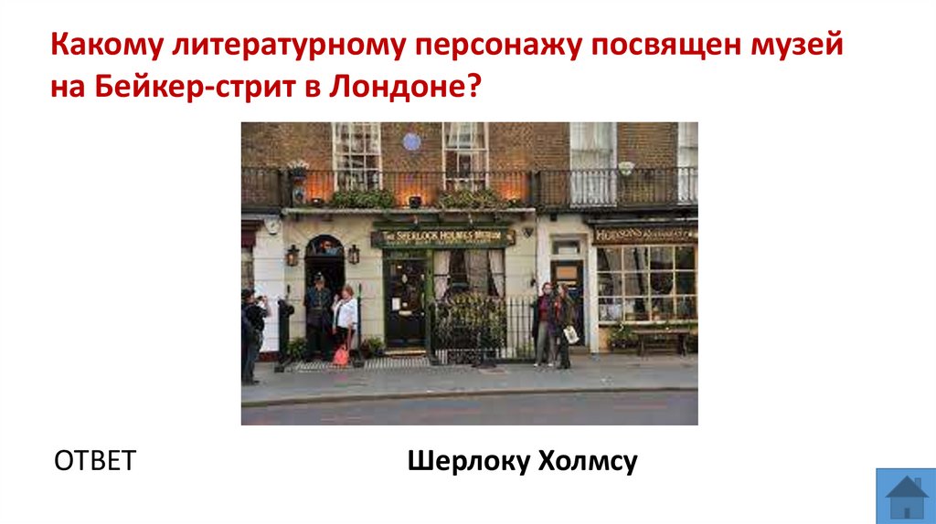 Какому литературному персонажу посвящен музейна Бейкер-стрит в Лондоне?