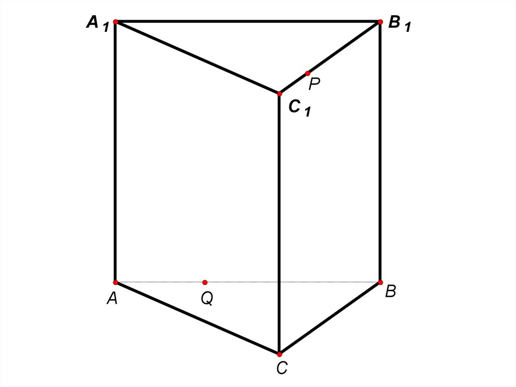 призмы равна 2. На рёбрах B1C1 и AB отмечены точки