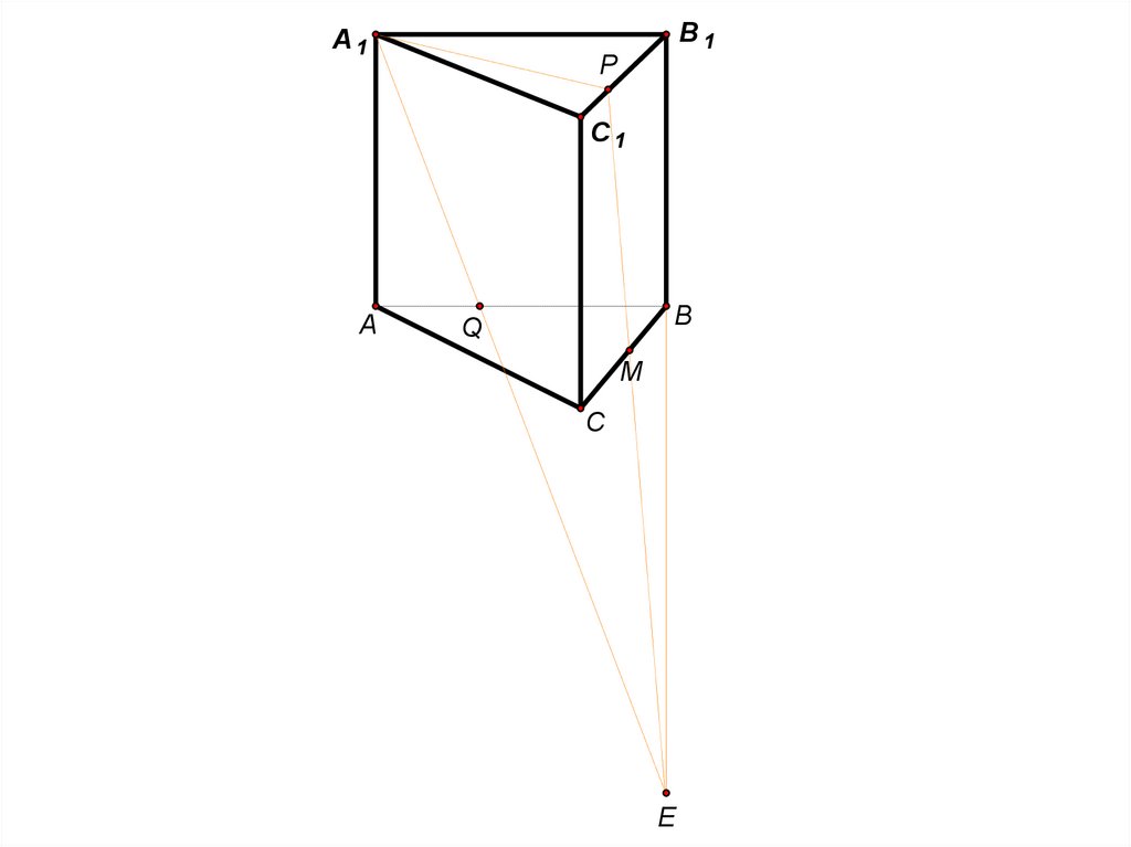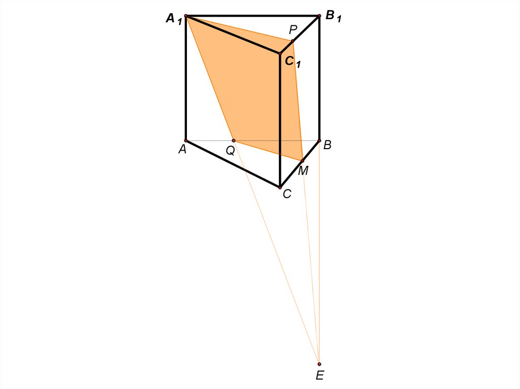 Плоскость A1 PQ пересекает ребро BC в точке M .
