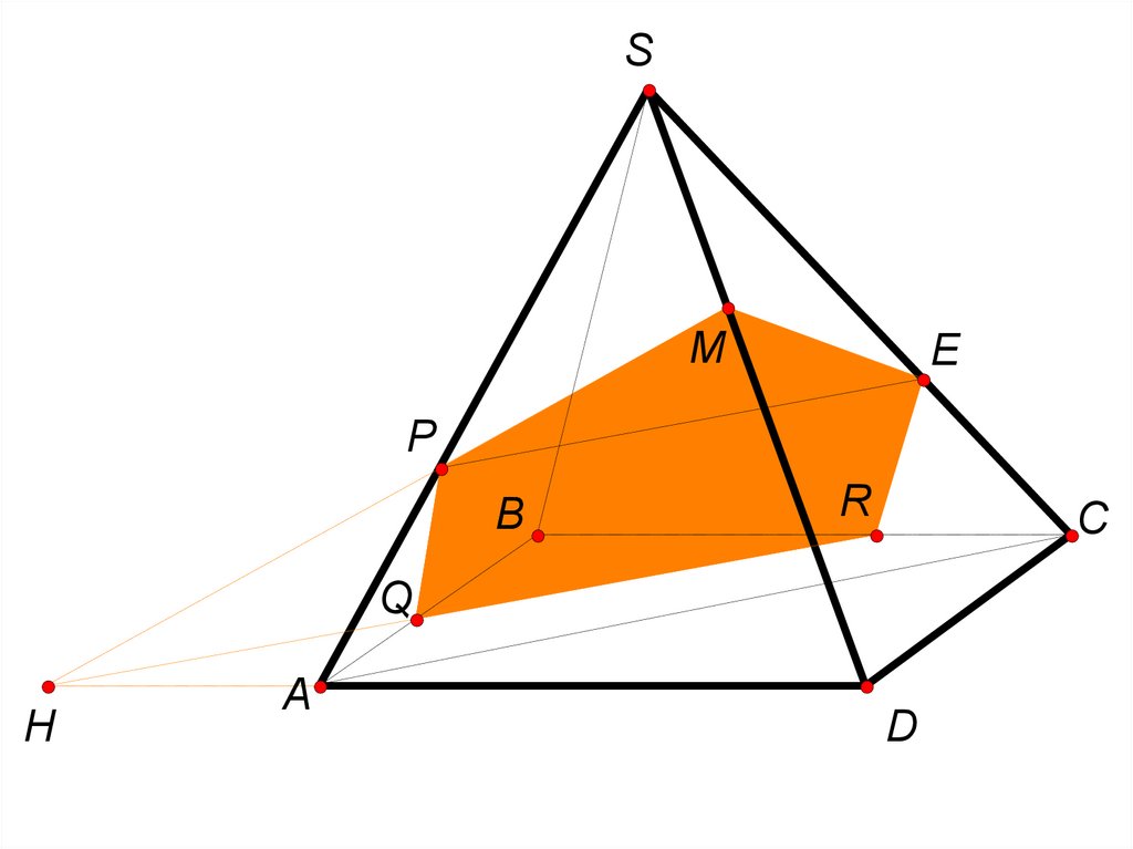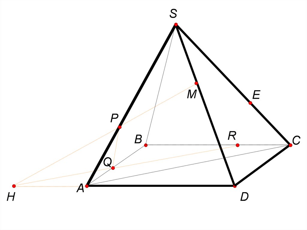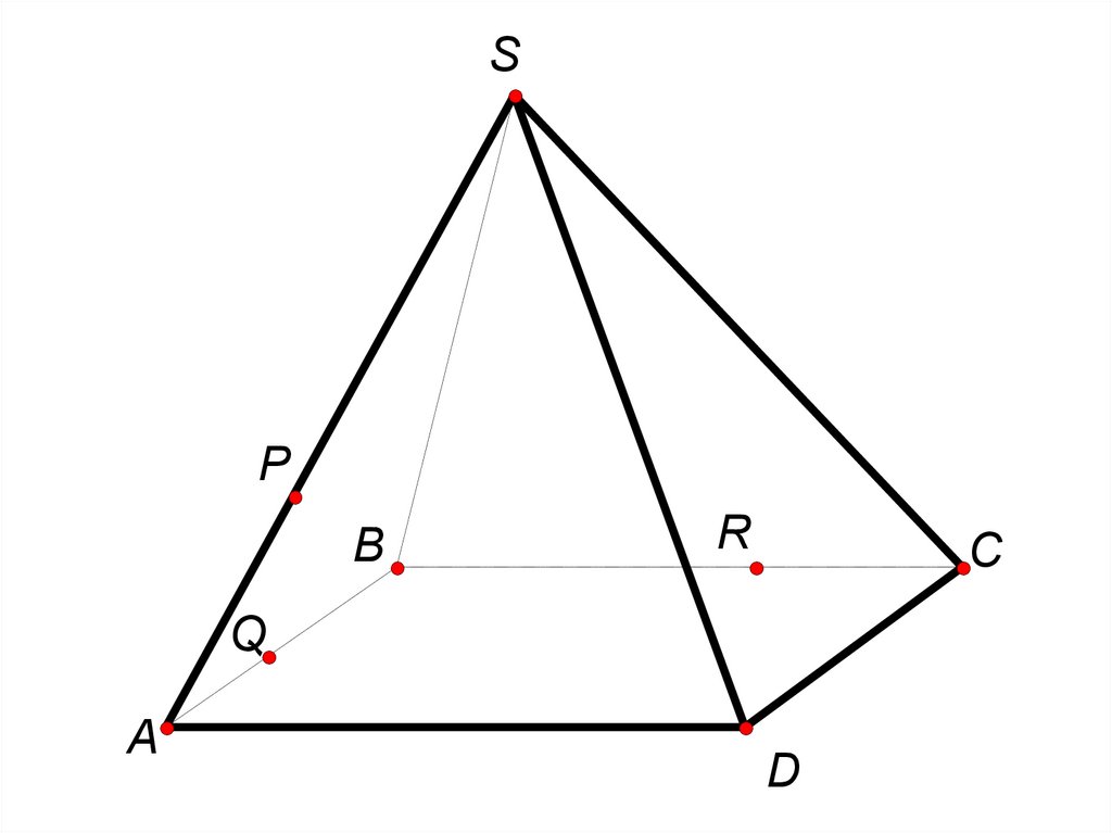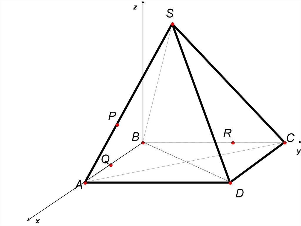 В правильной четырёхугольной пирамидеSABCD все рёбра равны 5. На рёбрах SA,