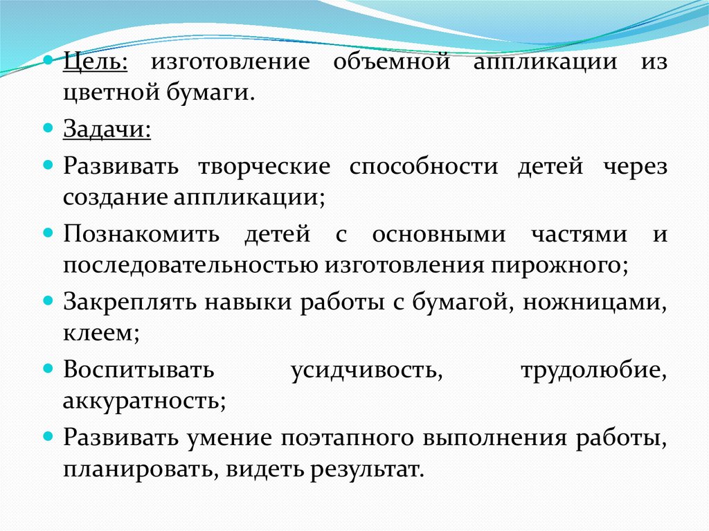 Цель: изготовление объемной аппликации изцветной бумаги.