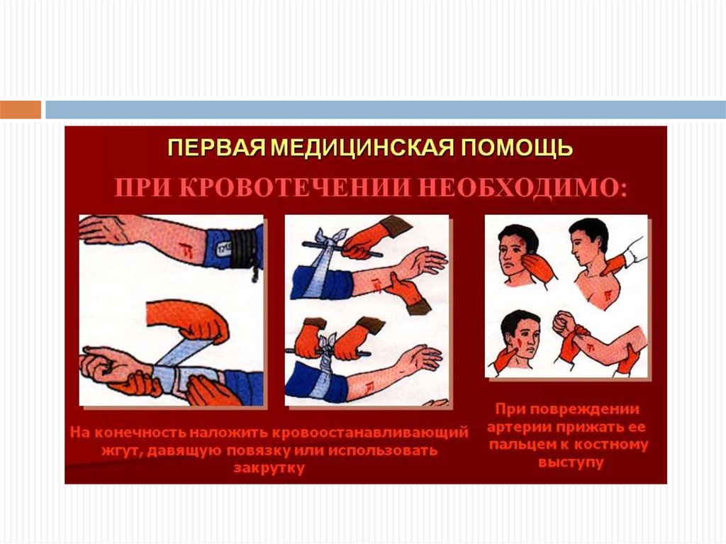 Для остановки кровотечения применяют кровоостанавливающие жгуты —