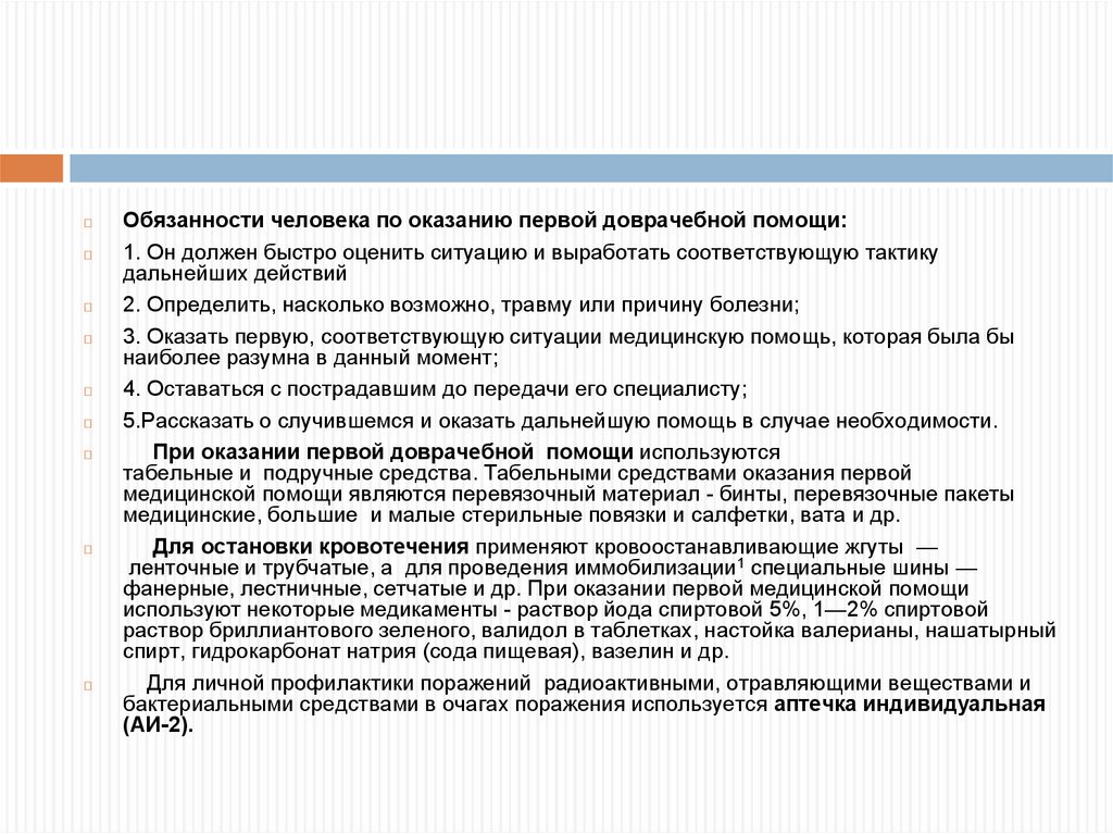 Задачи, стоящие перед человеком, оказывающим первую доврачебную помощь при травмах