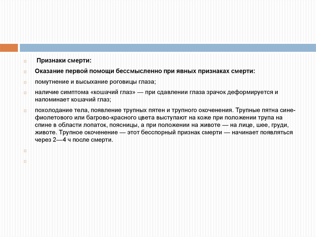 Оказание первой помощи бессмысленно при явных признаках смерти: