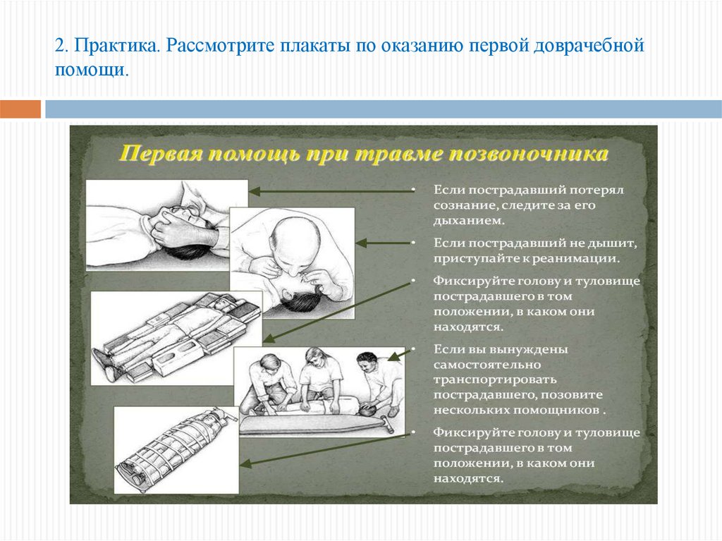 2. Практика. Рассмотрите плакаты по оказанию первой доврачебнойпомощи.