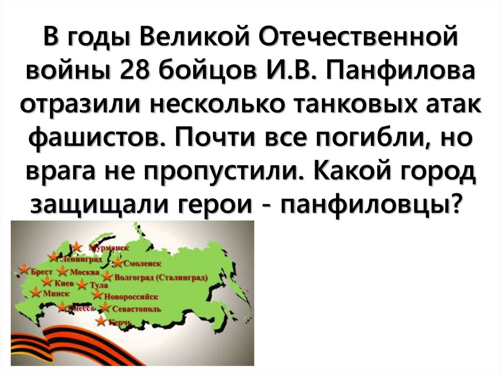 В годы Великой Отечественнойвойны 28 бойцов И.В. Панфилова