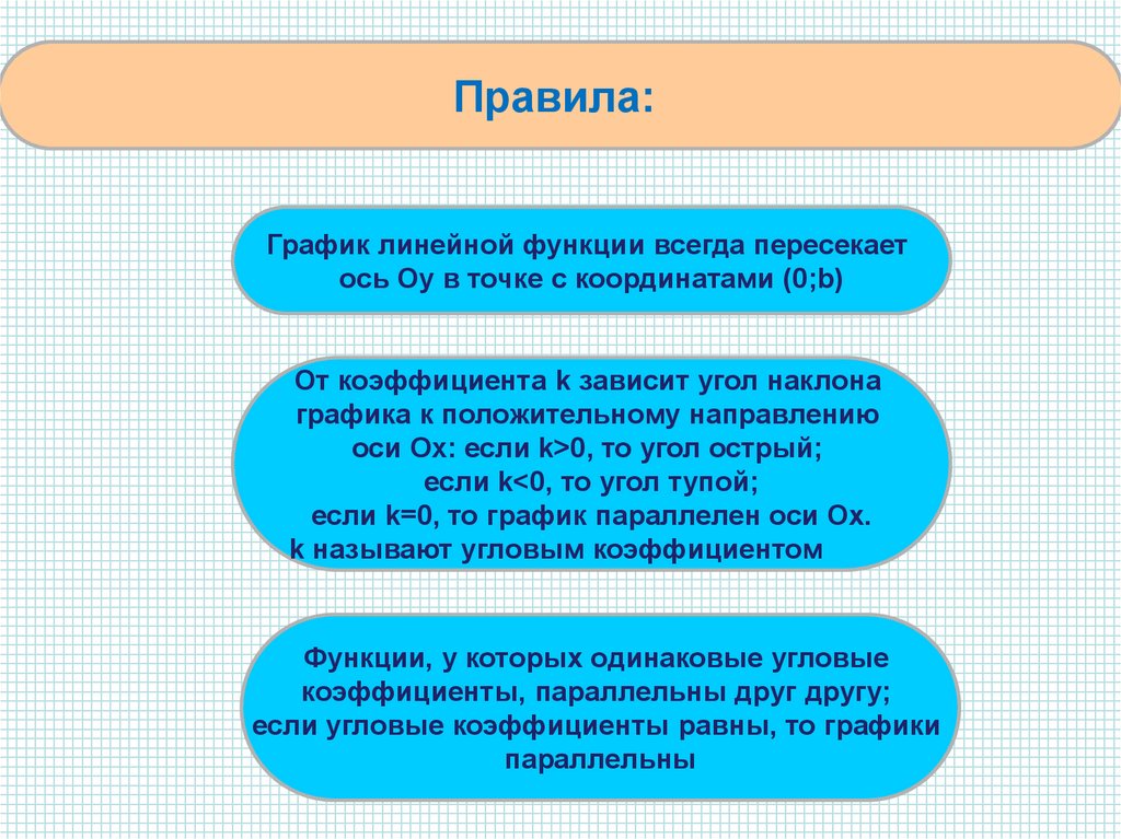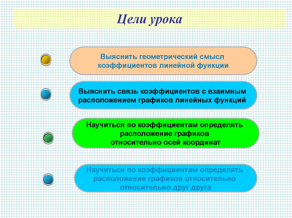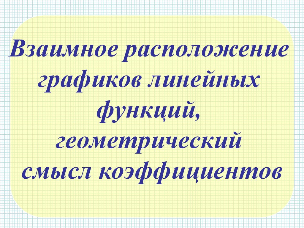 Взаимное расположение графиков линейных функций, геометрический смысл коэффициентов