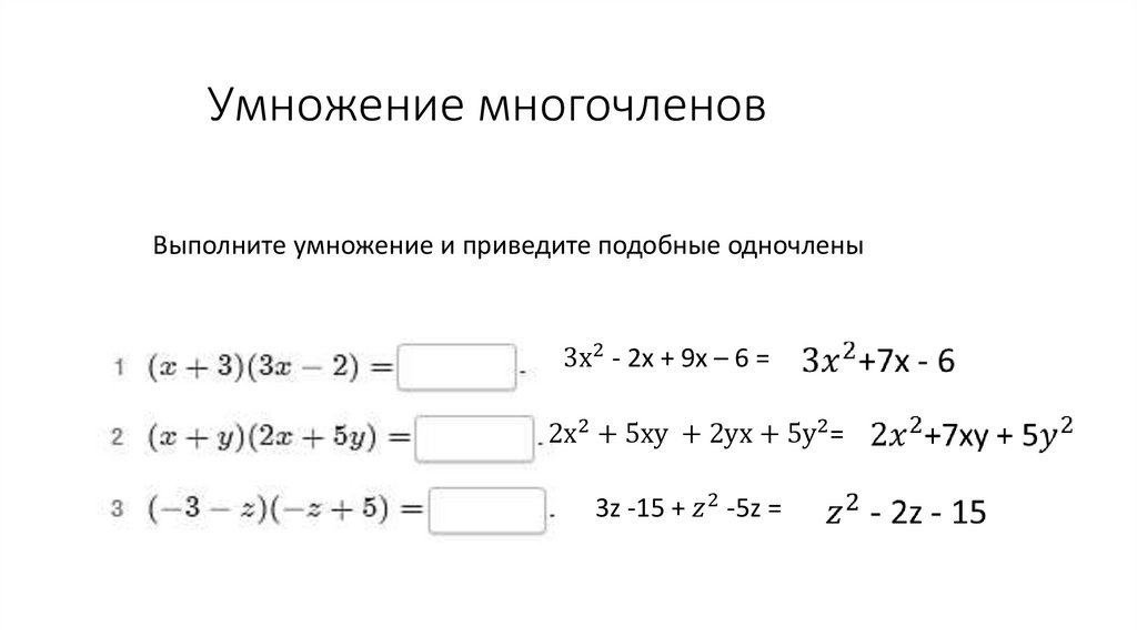 Умножение многочленов. Задачи