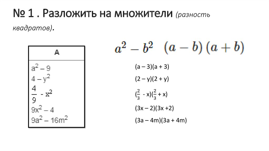 Разложение многочленов на множители с помощью формул сокращенного умножения