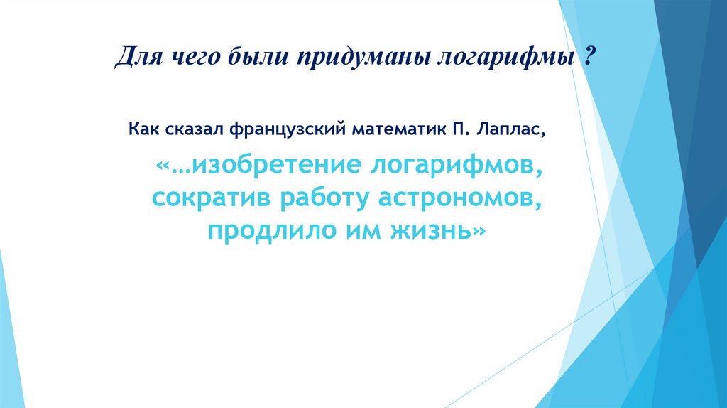 Для чего были придуманы логарифмы ?Как сказал французский математик П. Лаплас,