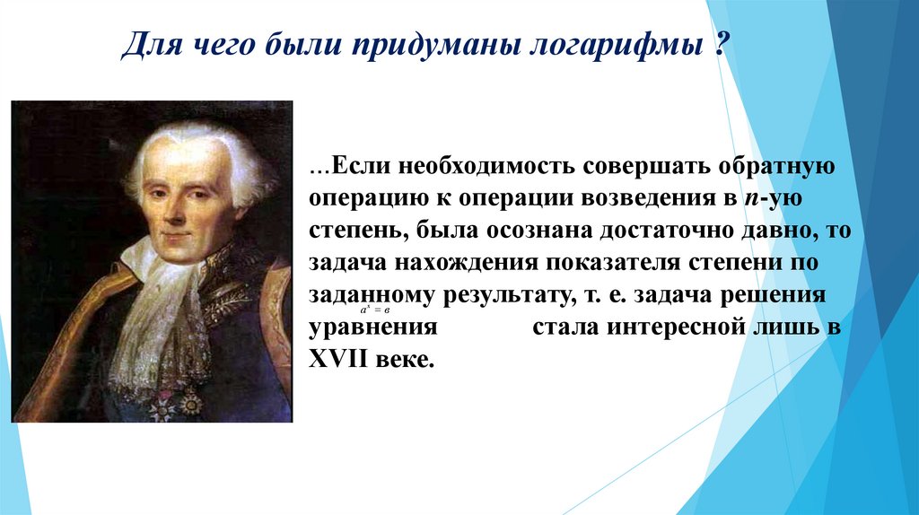 Понятие логарифма. Для чего были придуманы логарифмы?