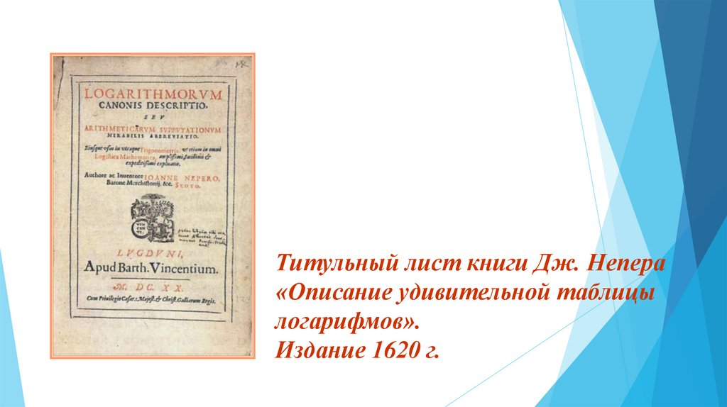 Титульный лист книги Дж. Непера«Описание удивительной таблицы