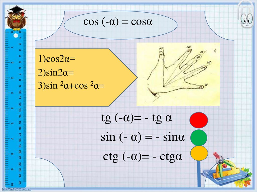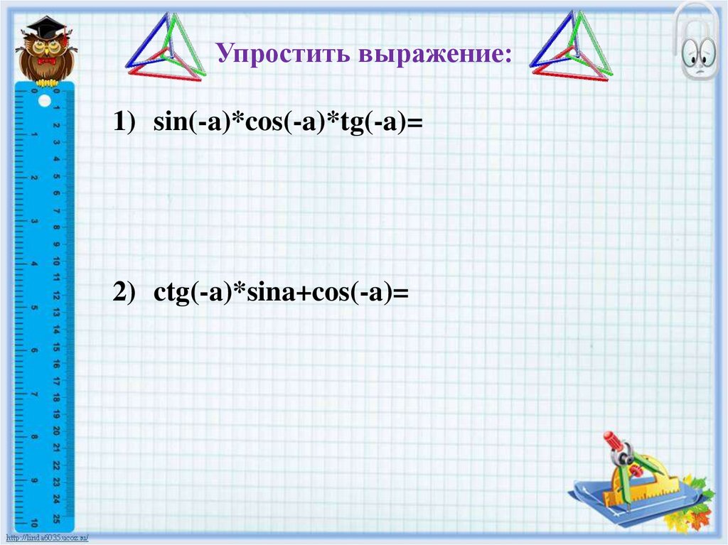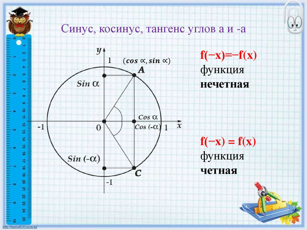 Синус, косинус, тангенс углов а и -а