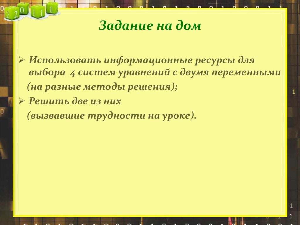 Задание на домИспользовать информационные ресурсы для