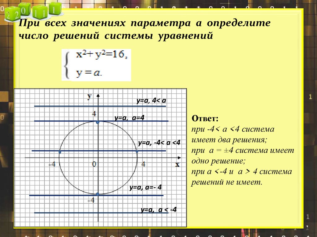 При всех значениях параметра а определитечисло решений системы уравнений