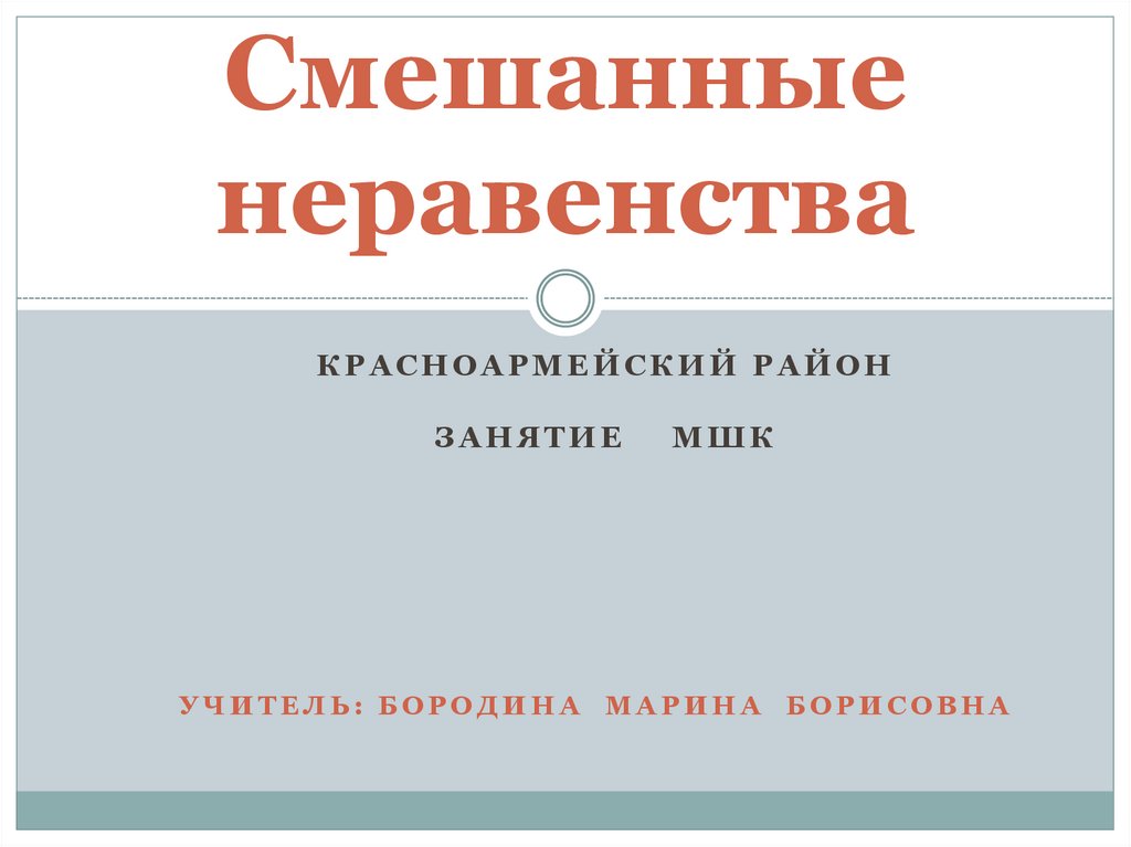 УЧИТЕЛЬ: БОРОДИНА МАРИНА БОРИСОВНА