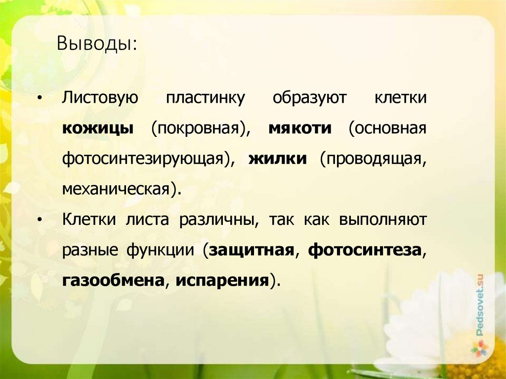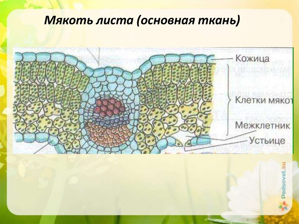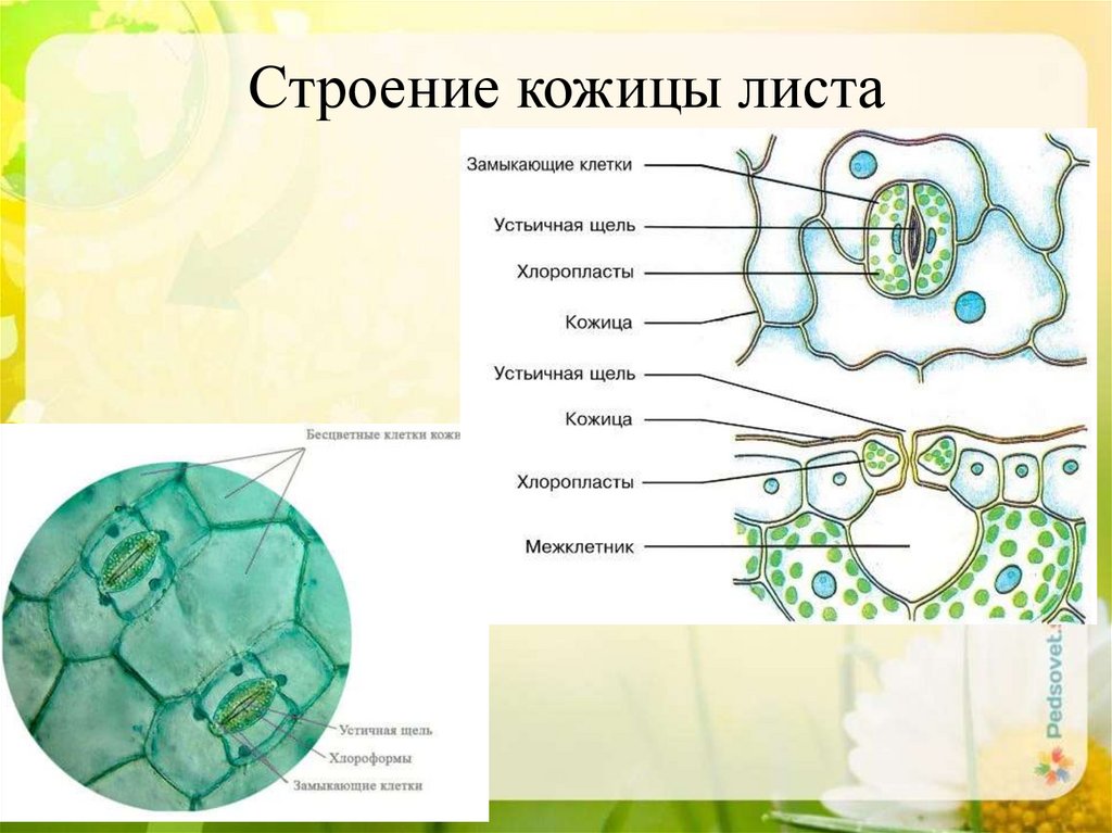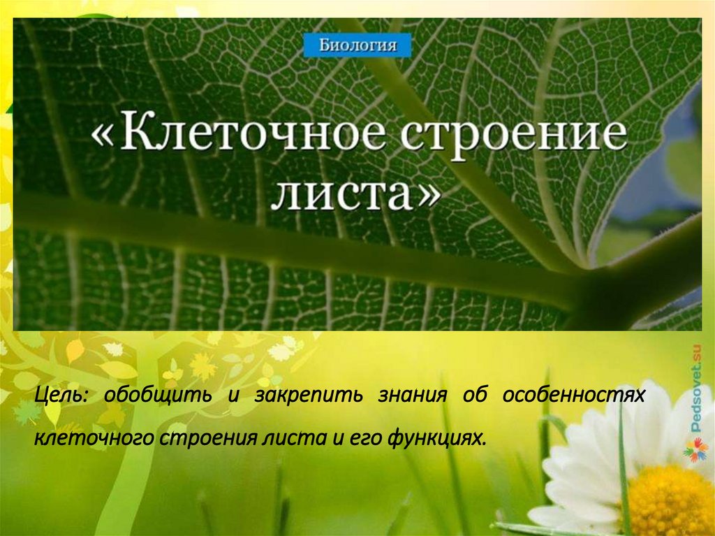 Цель: обобщить и закрепить знания об особенностяхклеточного строения листа и его функциях.
