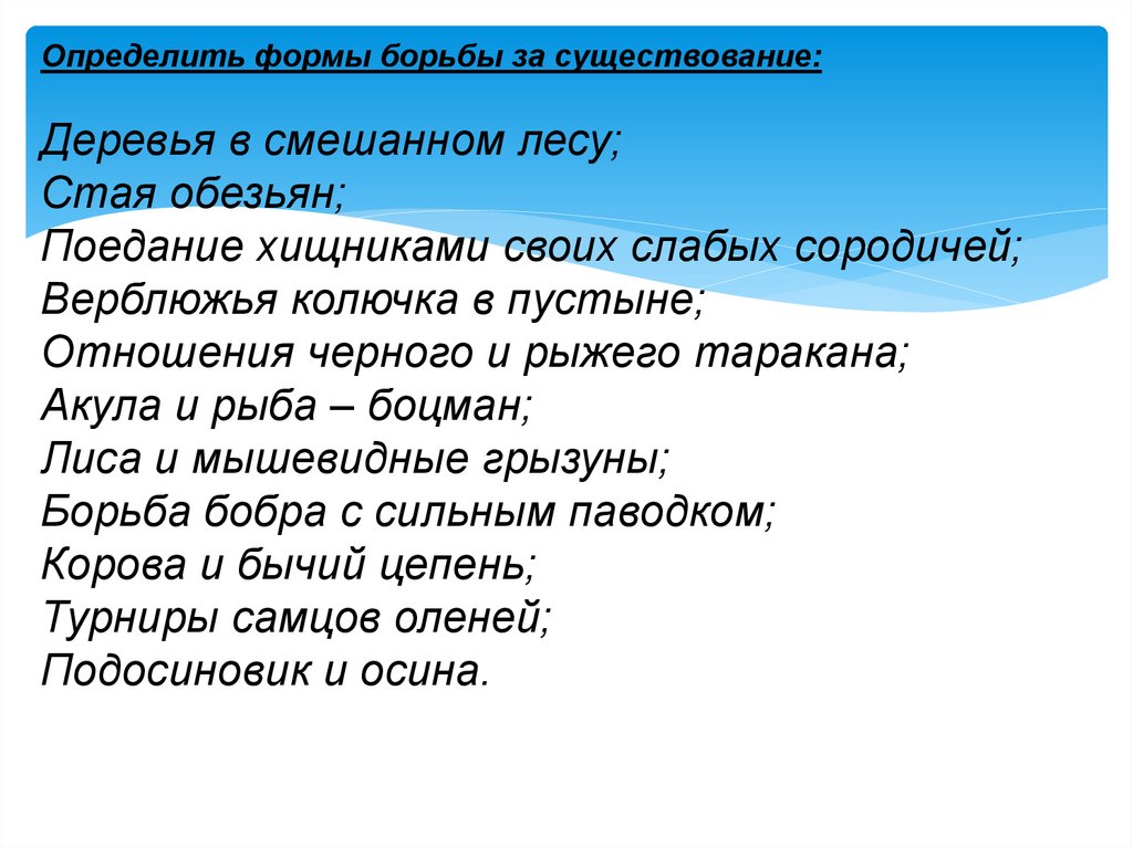 Определить формы борьбы за существование:Деревья в смешанном лесу;