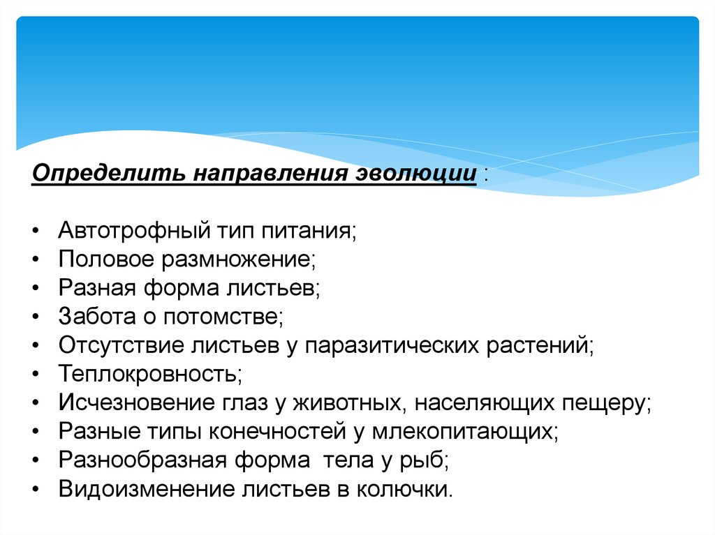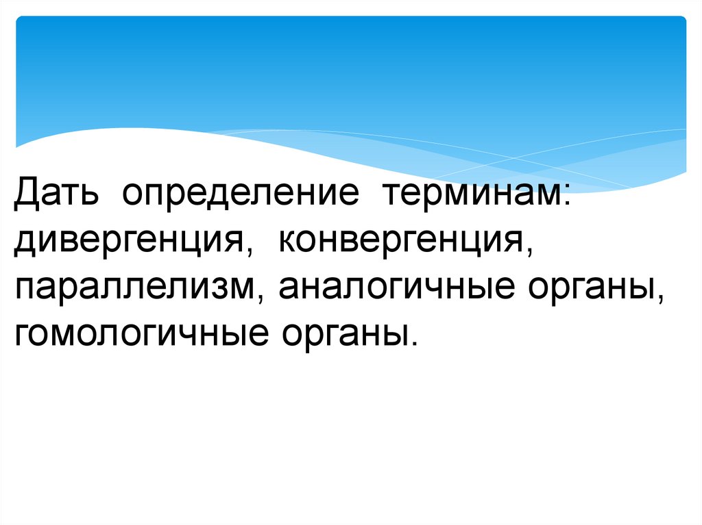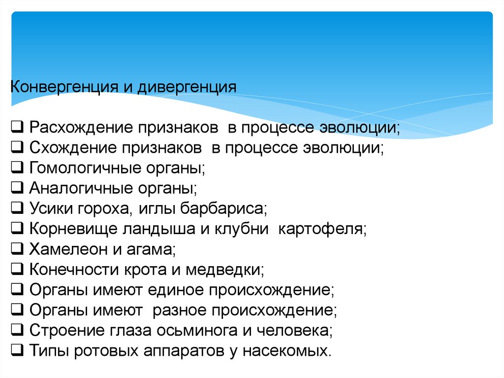 Конвергенция и дивергенцияРасхождение признаков в процессе эволюции;