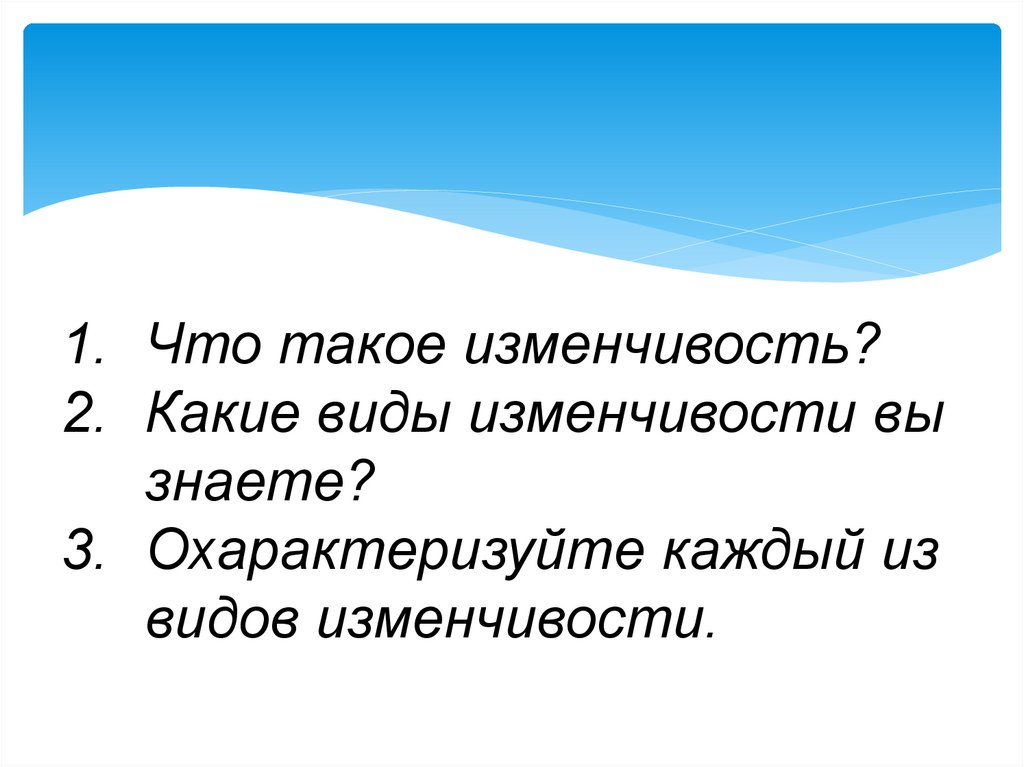 1. Что такое изменчивость?2. Какие виды изменчивости вы