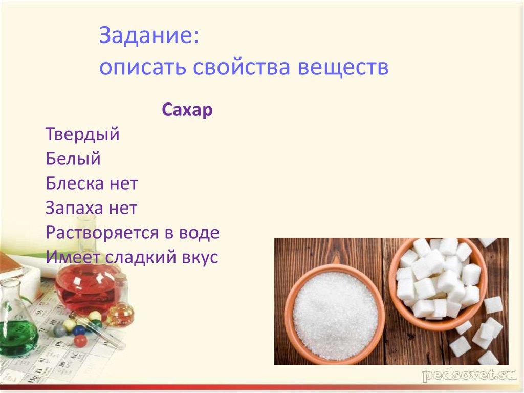 Задание:описать свойства веществ