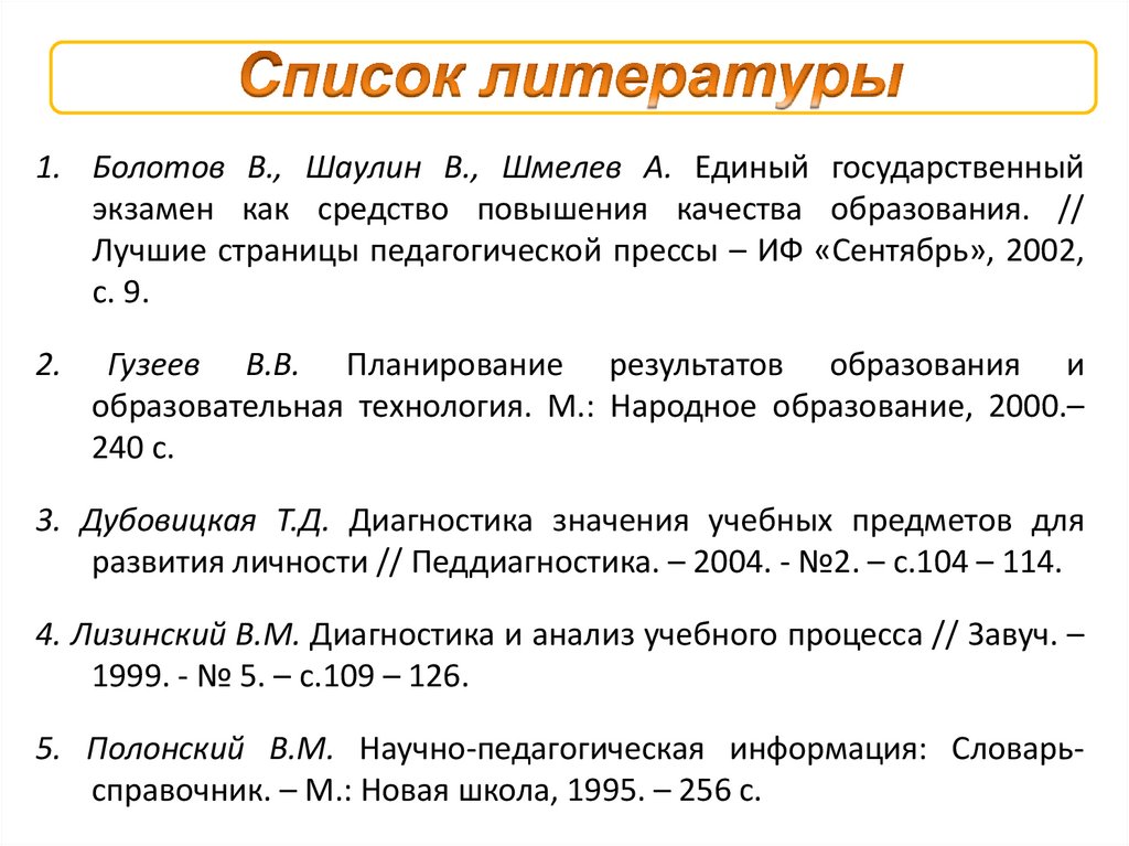 1. Болотов В., Шаулин В., Шмелев А. Единый государственныйэкзамен как средство повышения качества образования. //