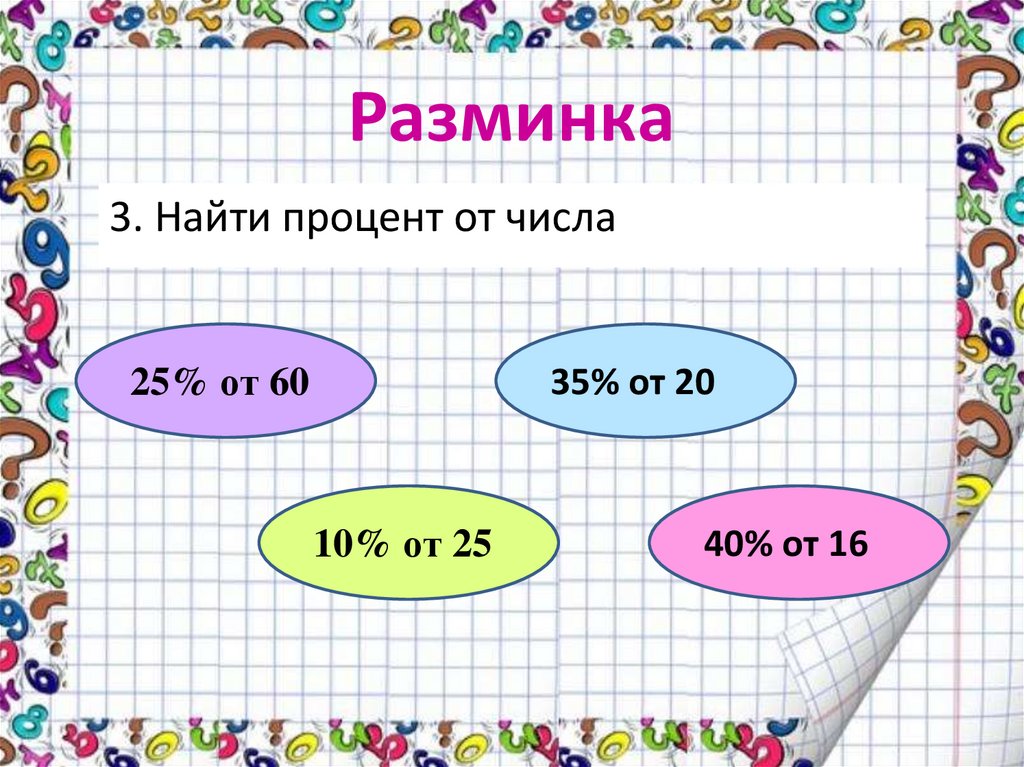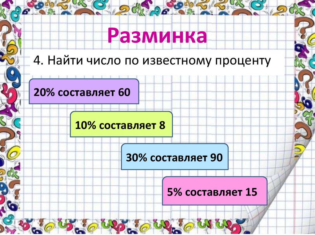Проценты. Нахождение процентов от числа. Нахождение числа по процентам