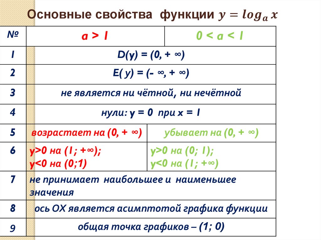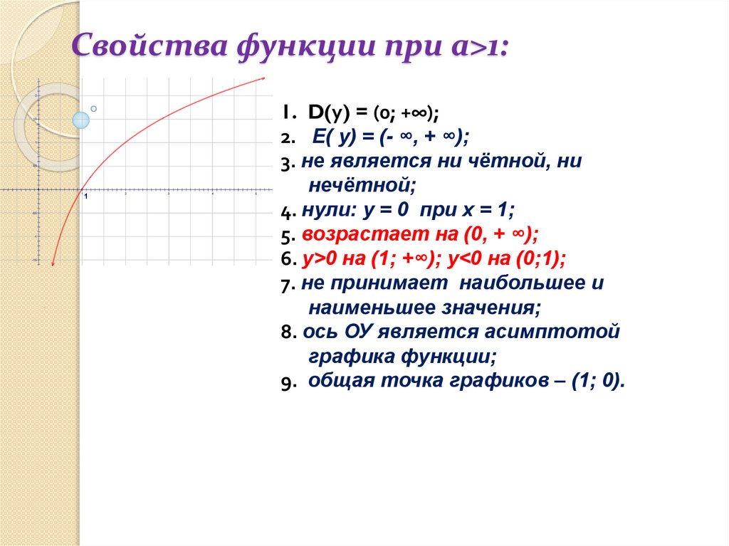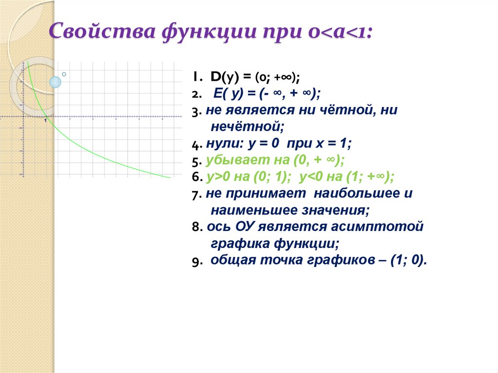 Показательная функция, её свойства и график. Логарифмическая функция, ее свойства и график