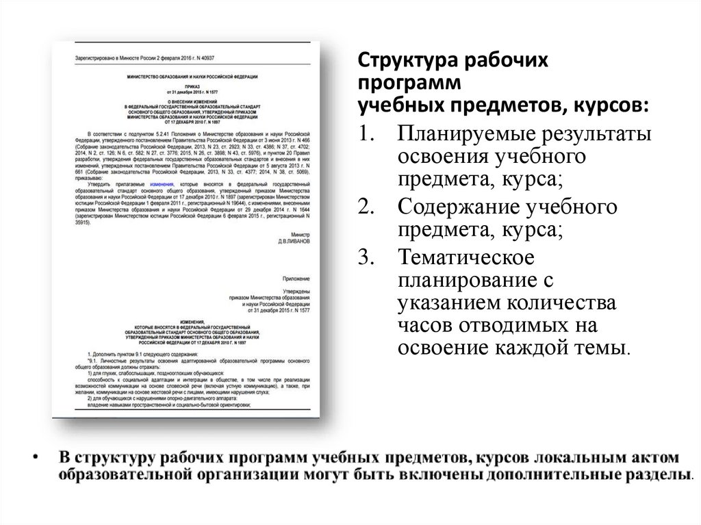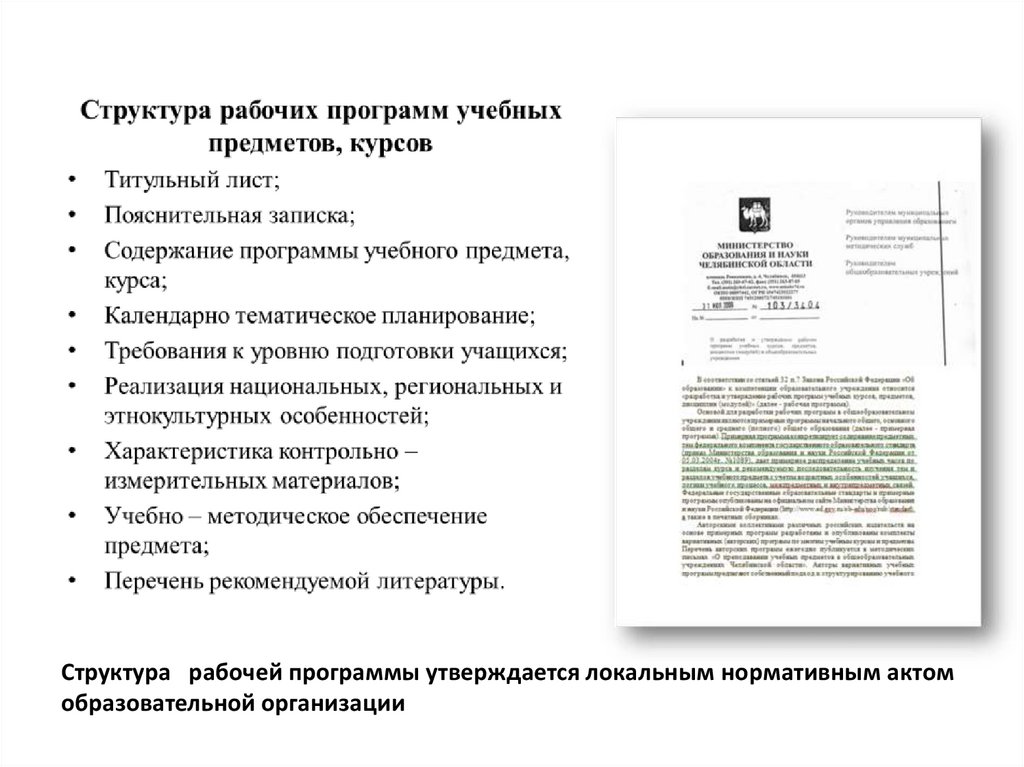 Структура рабочей программы утверждается локальным нормативным актомобразовательной организации