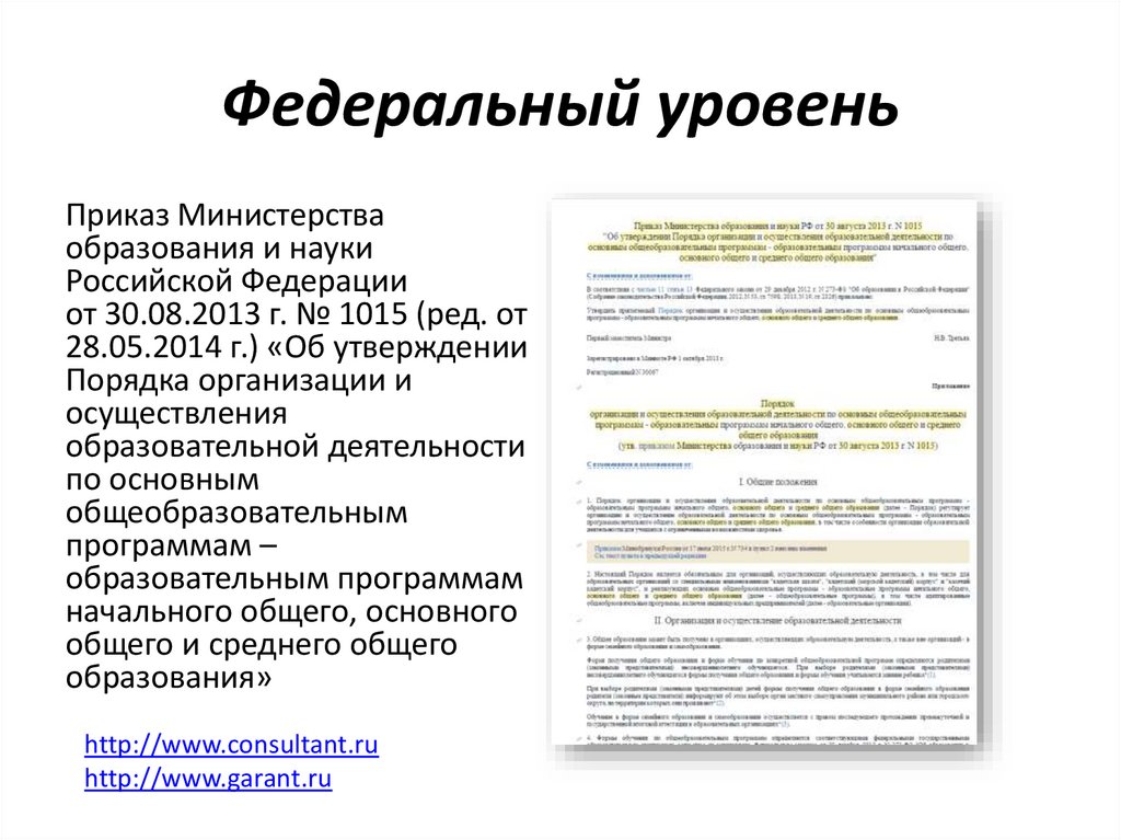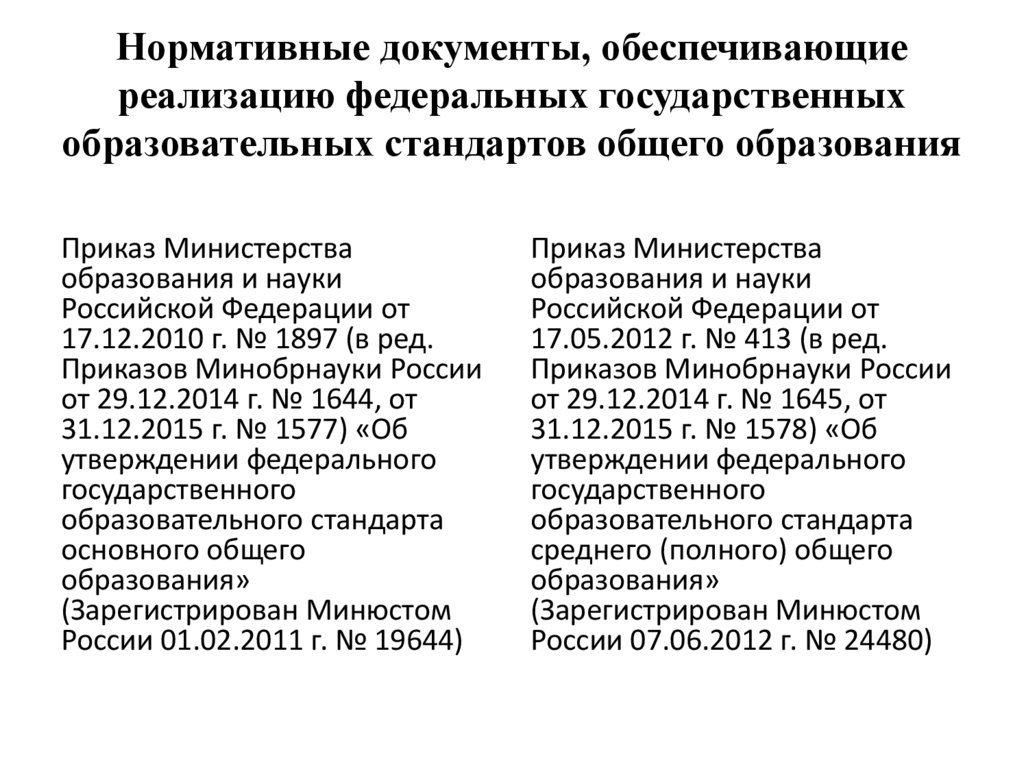 Нормативные документы, обеспечивающиереализацию федеральных государственных