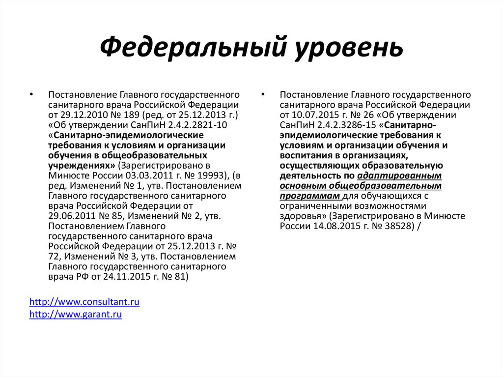 СанПиН 2.4.2.3286-15 «Санитарноэпидемиологические требования к