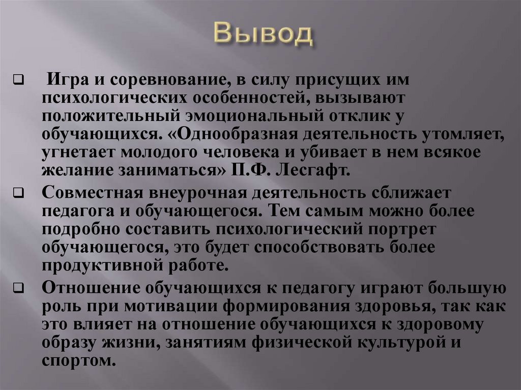 желание заниматься» П.Ф. Лесгафт.