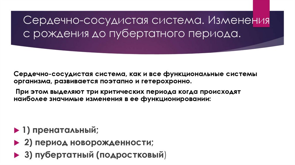 Сердечно-сосудистая система. Изменения с рождения до пубертатного периода