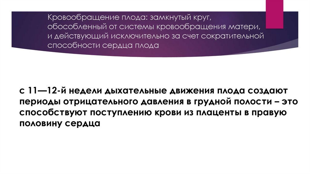 Кровообращение плода: замкнутый круг,обособленный от системы кровообращения матери,