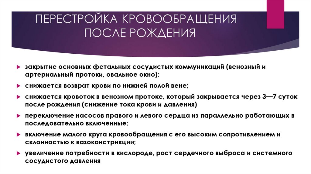 ПЕРЕСТРОЙКА КРОВООБРАЩЕНИЯПОСЛЕ РОЖДЕНИЯ