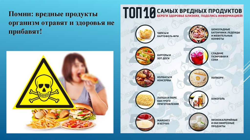 Помни: вредные продуктыорганизм отравят и здоровья не