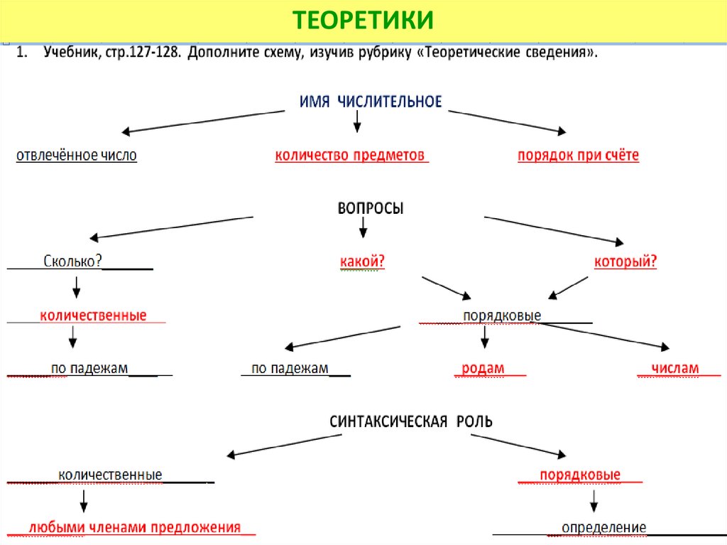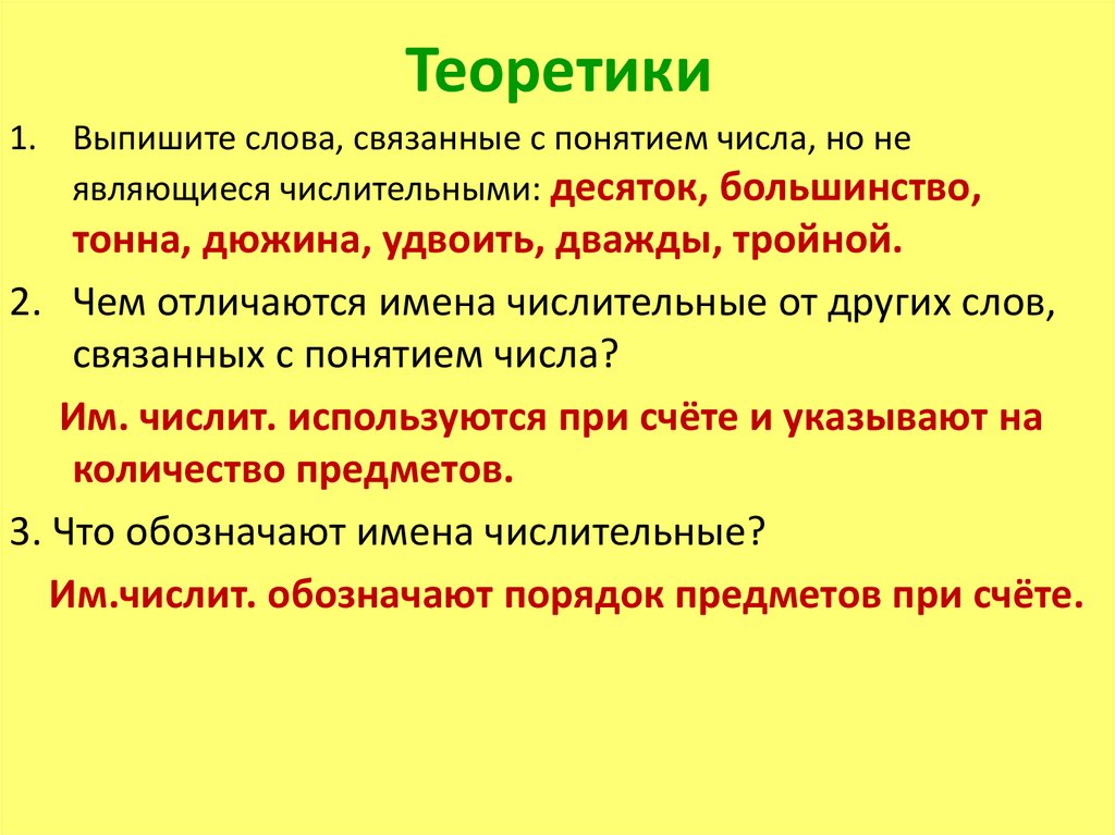 Теоретики1. Выпишите слова, связанные с понятием числа, но не