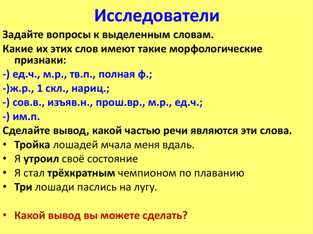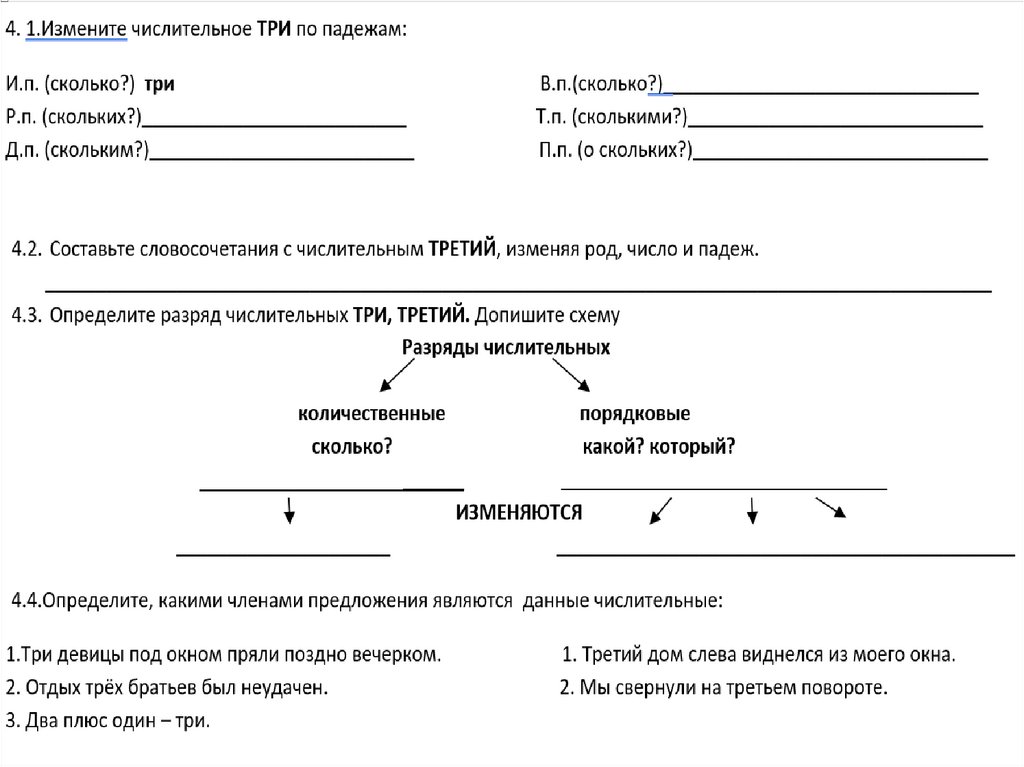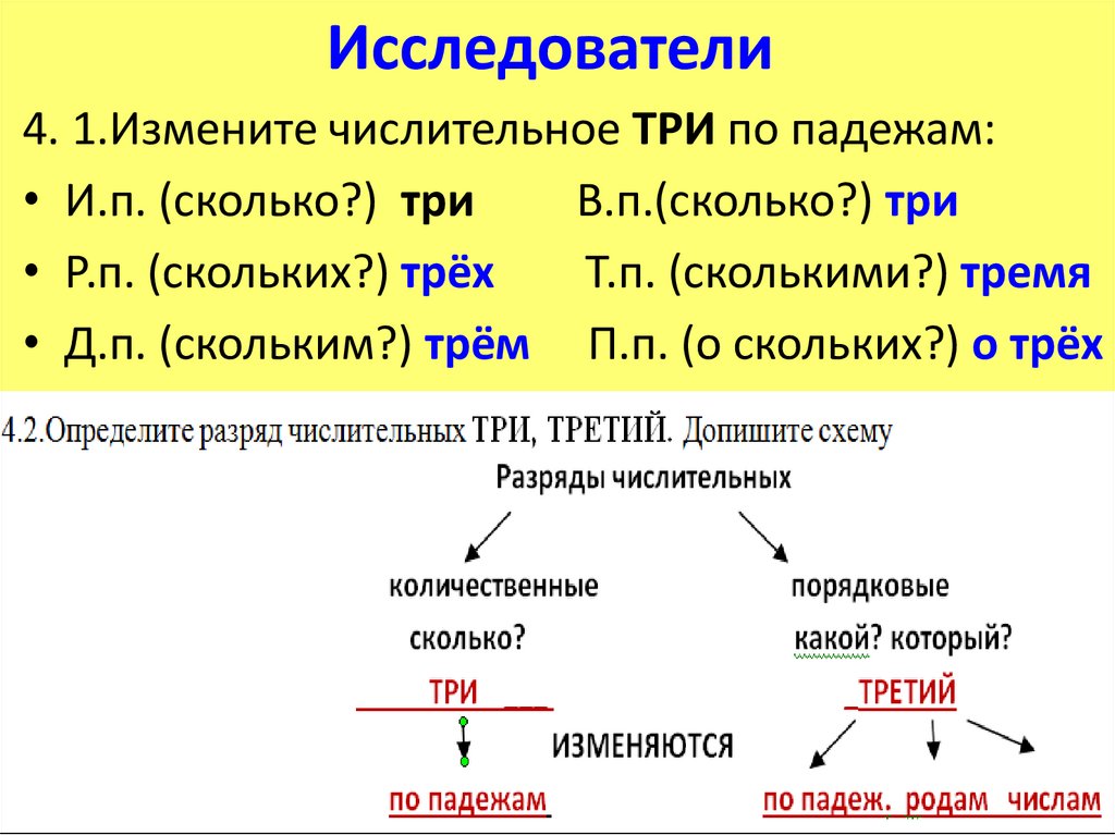 Исследователи4. 1.Измените числительное ТРИ по падежам: