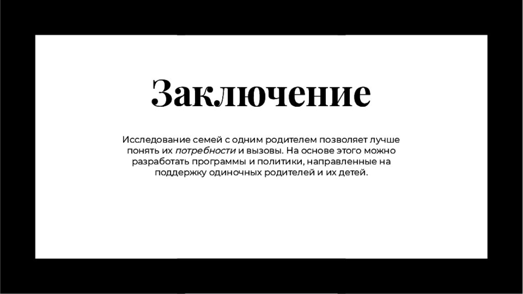 ЗаключениеИсследование семей с одним родителем позволяет лучше