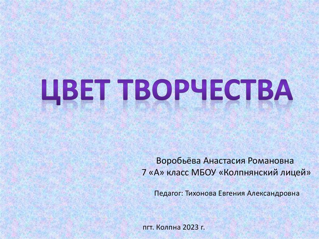 Воробьёва Анастасия Романовна7 «А» класс МБОУ «Колпнянский лицей»