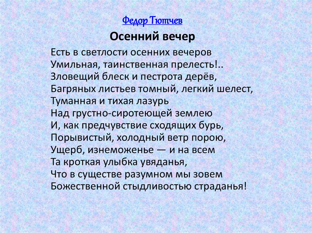 Тютчева «Осенний вечер».
