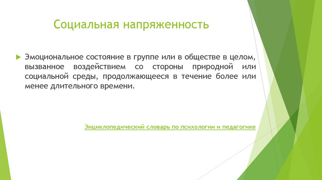 Социальная напряженностьЭмоциональное состояние в группе или в обществе в целом,